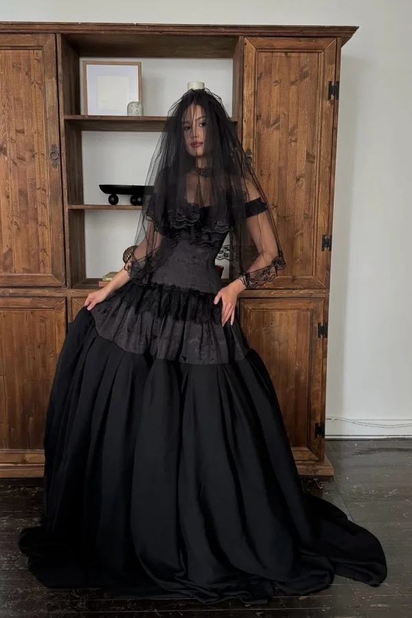 Dark, dramatic, and drop-dead gorgeous. This gown is giving gothic princess meets runway couture. For anyone who wants to mix elegance with a little mystery, this one is a show-stopper.